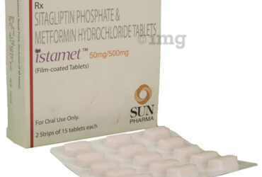 Istamet 50mg/500mg Tablet is a combination of two medicines that control high blood sugar levels in people with type 2 diabetes mellitus. This helps prevent serious complications of diabetes, such as kidney damage and blindness and may reduce your chances of having a heart attack or stroke.
